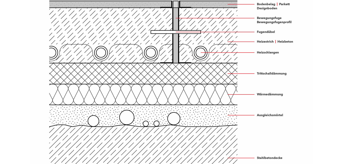 Dämmung,Fußbodenheizung, Betonsohle, Bodenbelag und Heizestrich