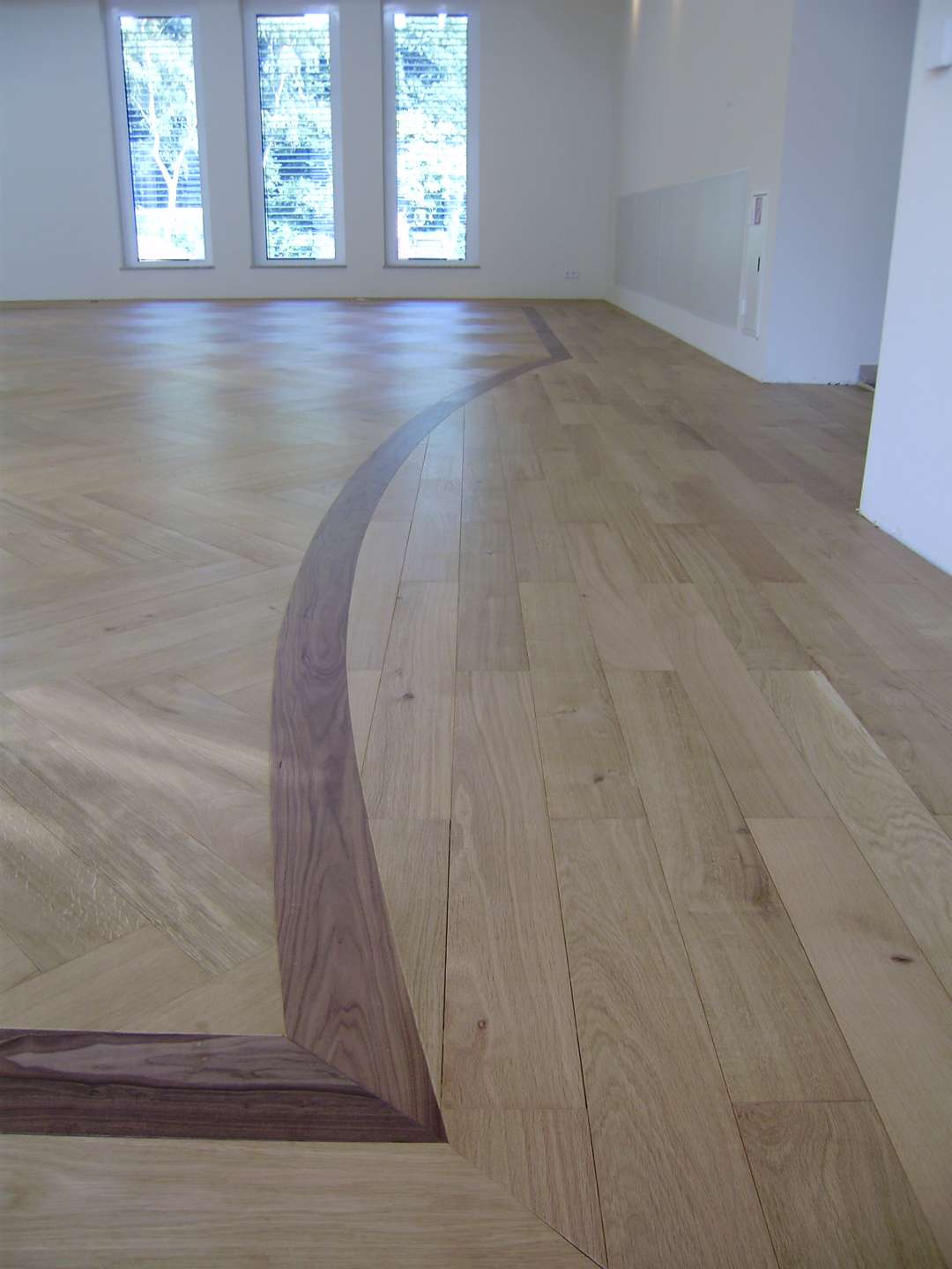 Fischgrätparkett aus Massivholzdielen mit Randfries